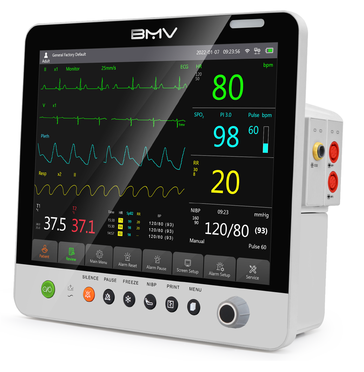 BMV 模块化患者监护仪配备全面的参数模块,可实现定制化配置,满足高需求临床场景中动态变化的诊疗需求。