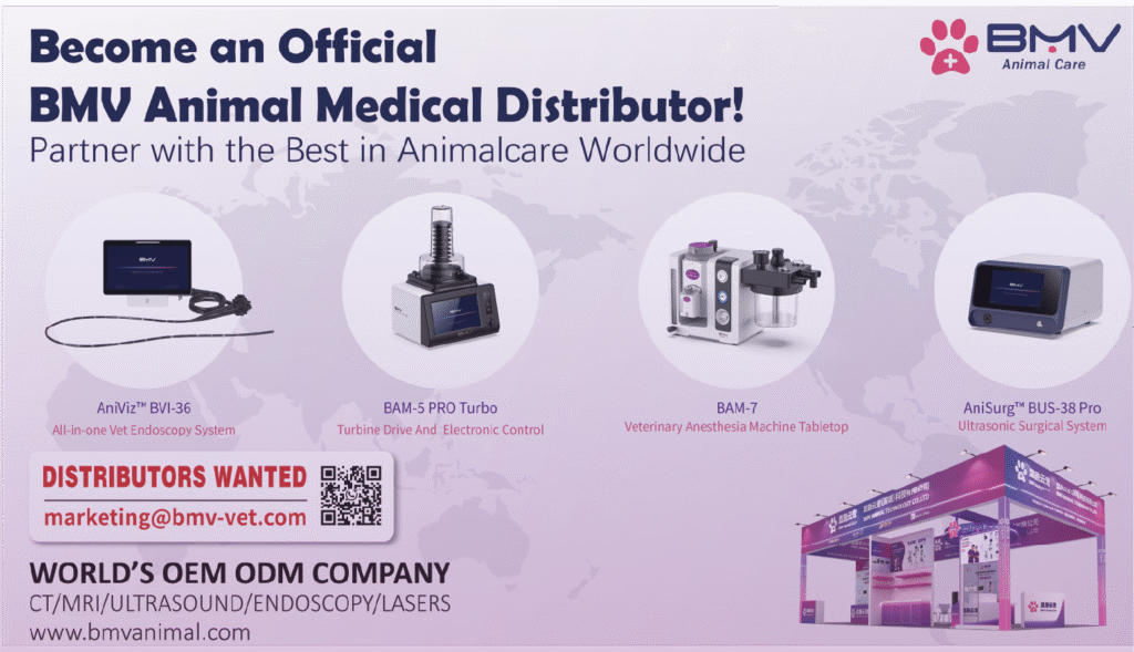BMV provides customized turnkey solutions for pet hospitals, integrating essential equipment and functional planning. It covers advanced imaging tools like CT, X-RAY, ENDOSCOPE (e.g., BVI-36 Vet), and Laser devices, plus surgical gear such as BAM series anesthesia ventilators and rehabilitation equipment. We offer full support from space design to operation, with 7*24 technical help and global service in 85+ countries. Our solutions fit companion, large, or exotic animals, helping you build an efficient, professional clinic.